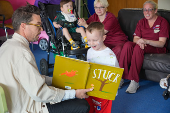 After the VIPs received a guided tour of NI Children’s Hospice facilities, Oliver also met some of the Hospice families, before delighting the audience by reading from his books Stuck and Here We Are to the enraptured Little Stars children, their siblings, and nursing staff.