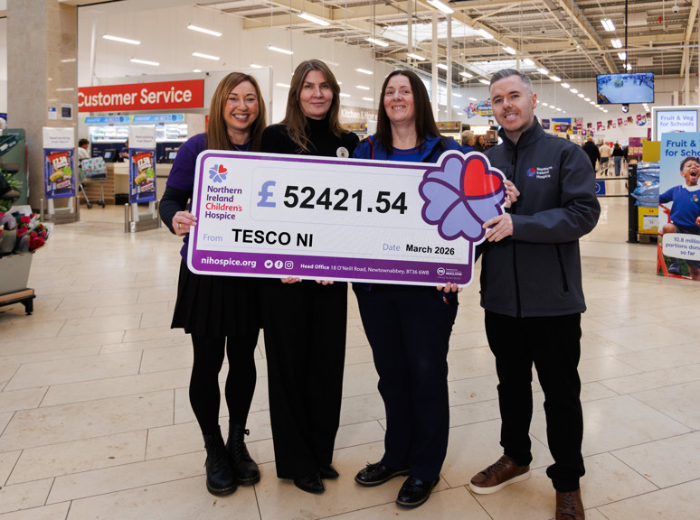 Michael Nugent, Community Outreach Manager at Northern Ireland Hospice, commented: “We are incredibly grateful to Tesco and its customers for this fantastic achievement. It is a wonderful example of the support the public continues to show for the Hospice, and this generous donation will make a real and tangible difference. It will help Northern Ireland Hospice continue to provide vital palliative care to children and adults across our community.